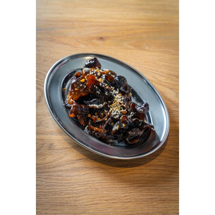 Древесные грибы маринованые в соусе краб и обжареные в кунжутном масле.